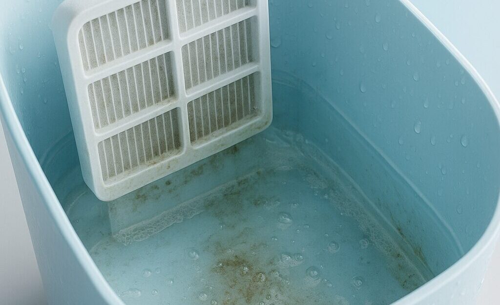 最低でも月1回はフィルターと冷却パッドを取り外し、重曹や中性洗剤で洗浄しましょう。タンクの縁や給水口など、見えにくい部分の汚れもカビの温床になります。必要に応じて、柔らかい歯ブラシや綿棒を使って細部まで洗浄します。